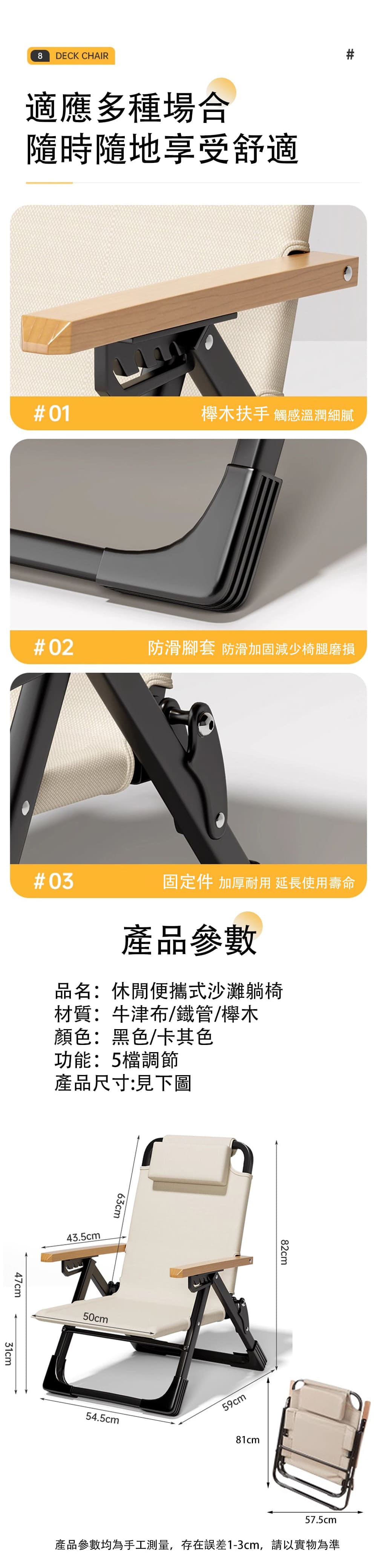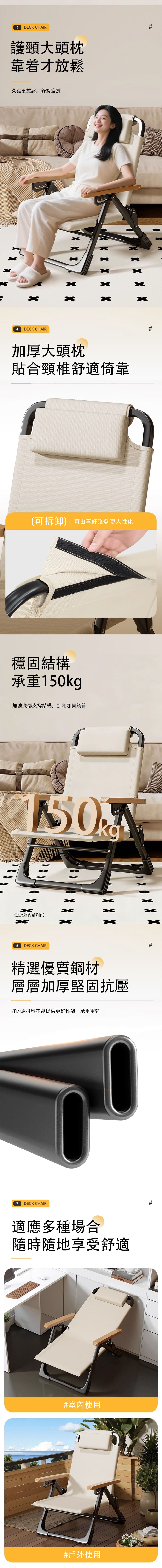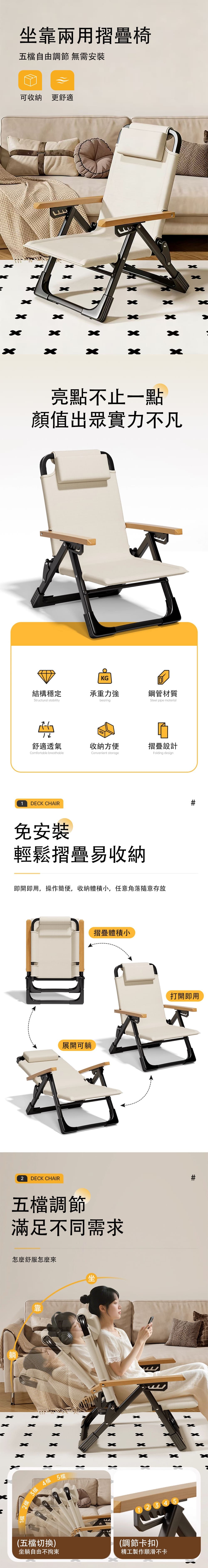 【超實用】免安裝-5檔調節-休閒便攜式户内外躺椅